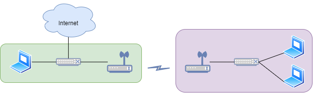 在无法布线的楼宇之间、在物理位置较远的站点之间,可以通过无线桥接进行无线连接。无线桥接是通过无线上连,有线下连的方式组网。