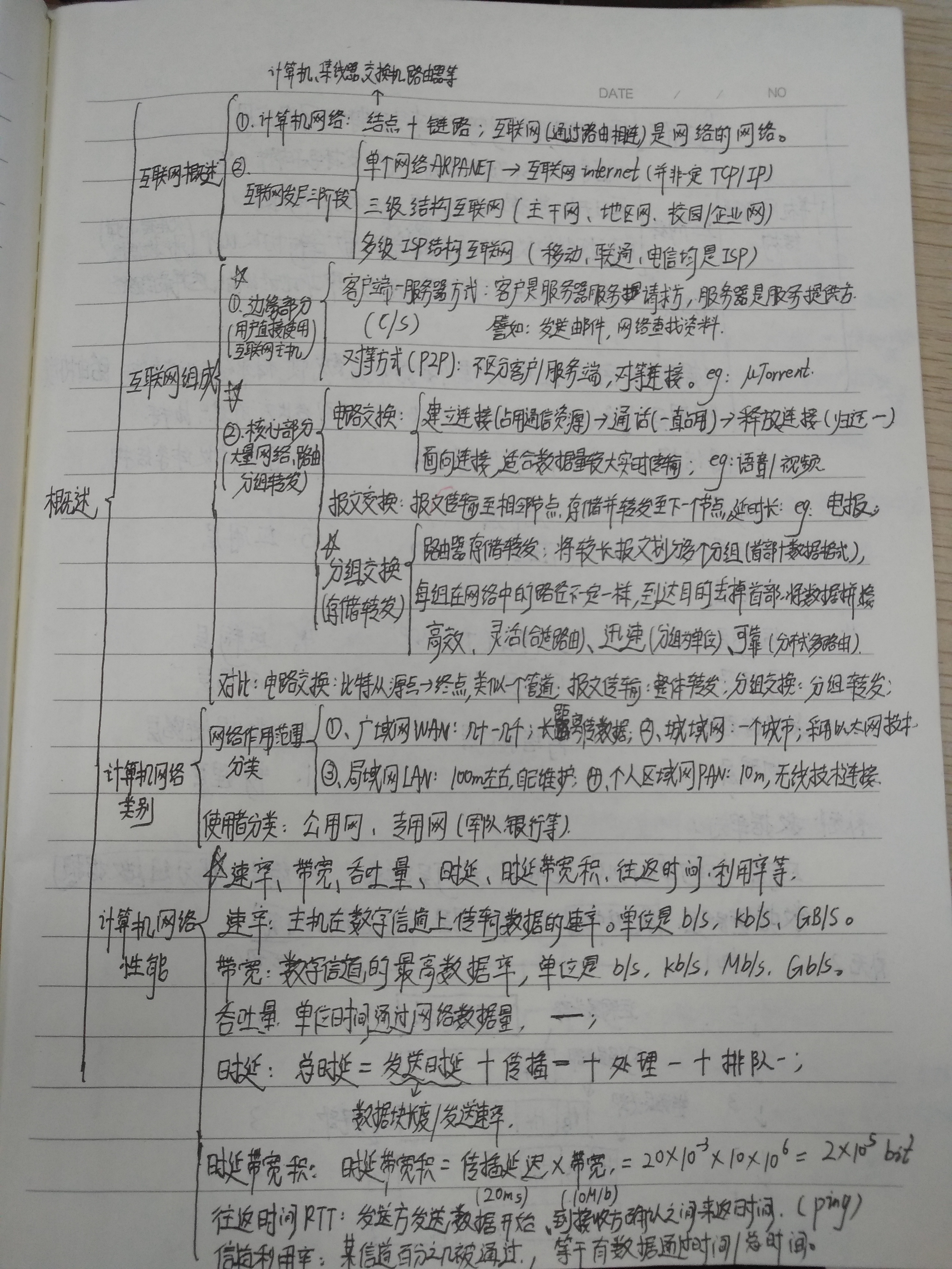 核心部分要向网络边缘的大量主机提供连通性,使边缘部分的每一台主机都能够向其他主机通信。在网络核心部分中其特殊作用的是路由器,其实现分组交换,即转发收到分组。主要分为:电路交换(建立连接->通话->释放连接,面向连接,适用于较大数据量实时传输。eg:语音/视频);报文交换(报文传输到相邻节点,存储并转发,eg:电报);分组交换(存储转发,转发分组,划分拼接,高效灵活迅速可靠)