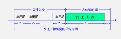 成功发送一个帧需要占用信道的时间是 T 0 + r,比这个帧的发送时间要多一个单程端到端时延 r。