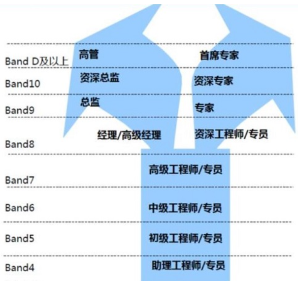 一套体系是专家路线 【P序列=技术岗】,程序员、工程师,某一个专业领域的人才,一共分为 14 级,从 P1 到 P14。