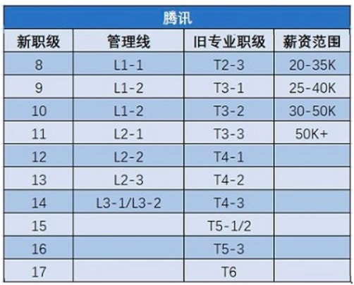 腾讯目前用的是4-17的新级别,实习生和应届毕业生基本是4级,最高级,原来的T6.1-6.3,统称为16级。对于校招入职的新人来说,加入“鹅厂”拿到的年薪在20万-40万之间。