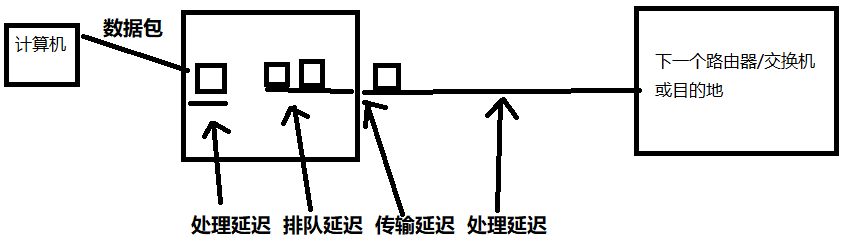 - 排队延迟取决于:1.队列中位于当前数据包之前的数据包数量及其大小。2.接口的传输速率