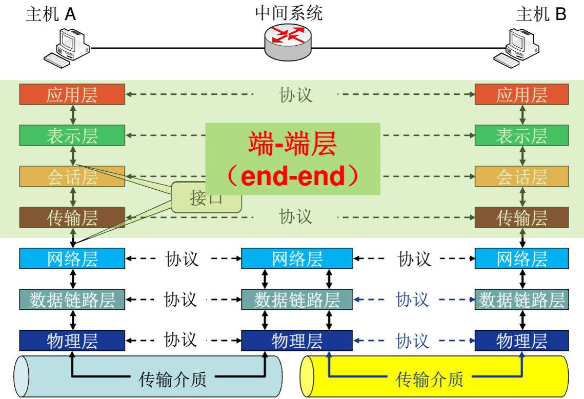 注意:一些物理媒介,如双绞线、光缆、无线信道等,不属于物理层而在物理层之下,可以将物理媒介当做第0层。