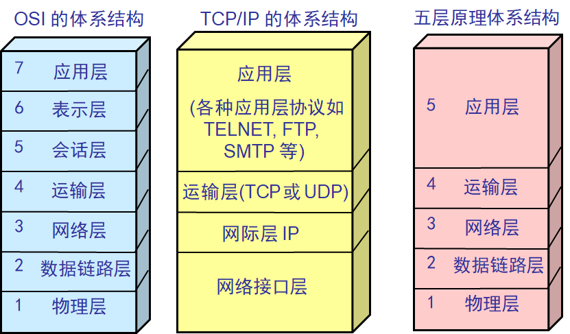 在学习计算机网络时,我们往往采取折中方法,结合OSI参考模型和TCP/IP的优点,采取一种五层体系结构:物理层、数据链路层、网络层、传输层和应用层。