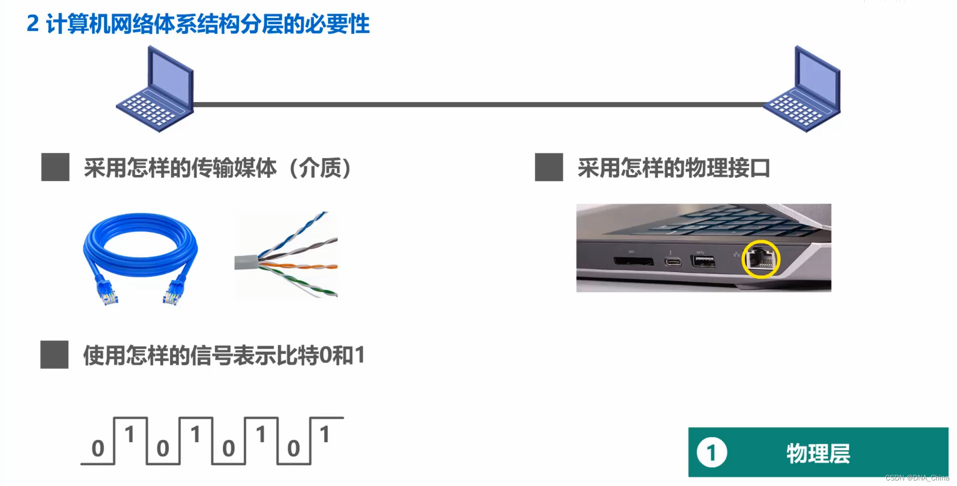 - 解决了这些问题,两台计算机就可以通过信号来传输比特0或1了。