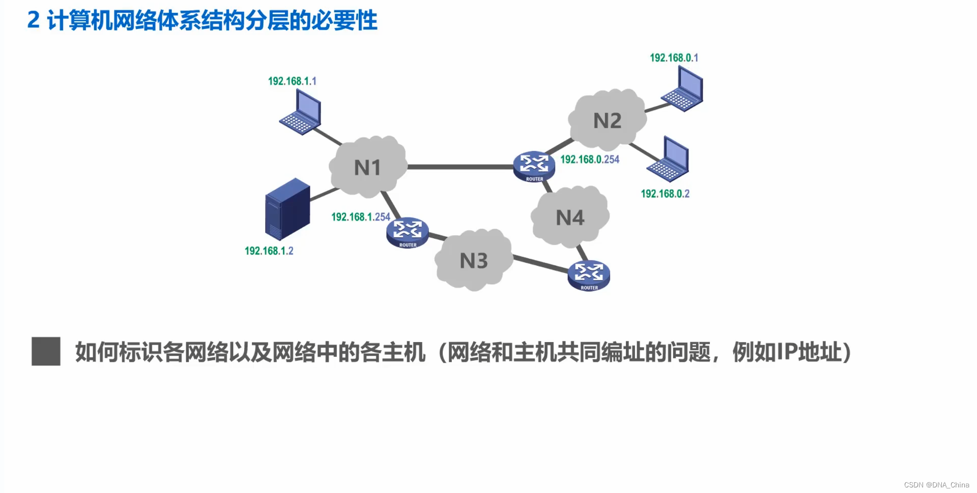 - 相信同学们一定听过 IP地址。如图所示,这是网络 N1 中各设备的 IP 地址。