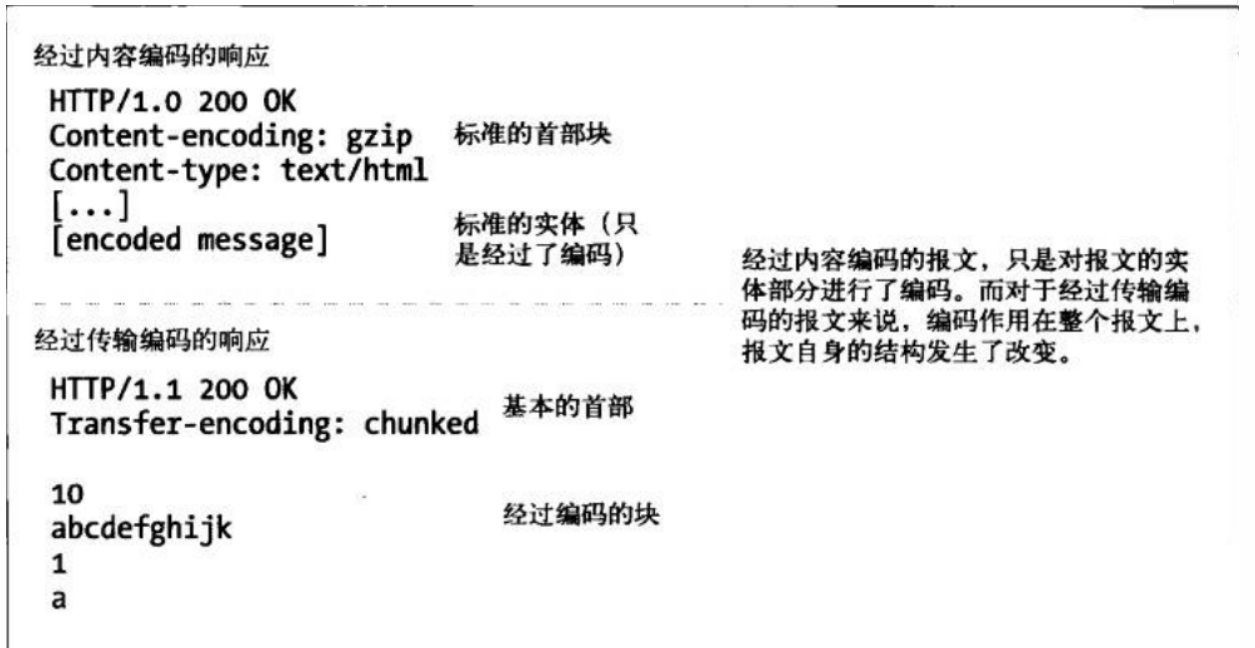 identity 表明没有对实体进行编码,当没有 Content-Encoding 首部字段时,默认采用此编码方式 3. 传输编码- 内容编码是对报文的主体进行的可逆变换,是和内容的具体格式细节紧密相关的。