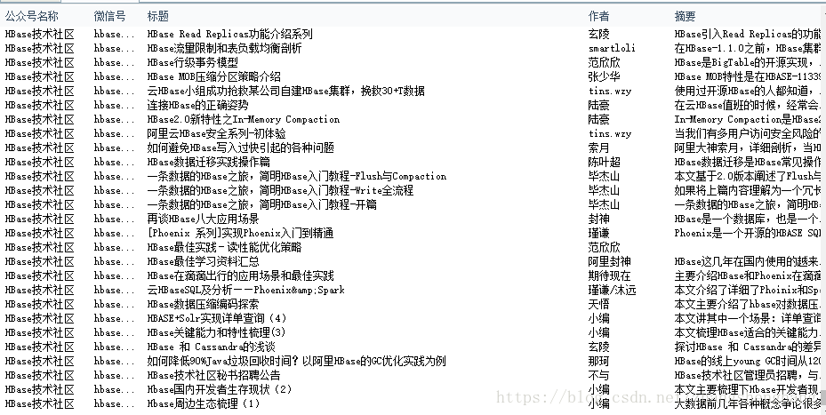 | 公众号名称 | 标题 | 作者 | 发布时间 |