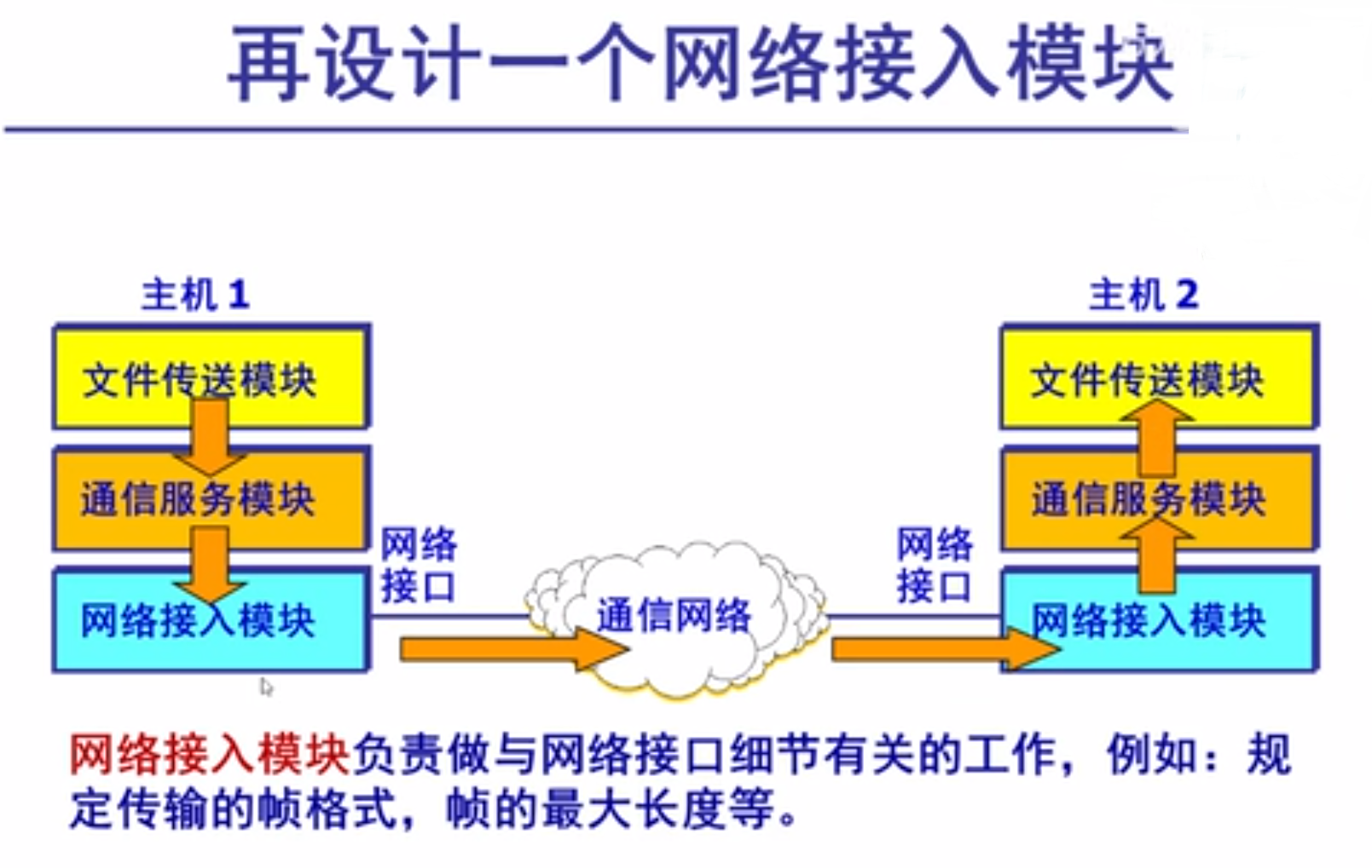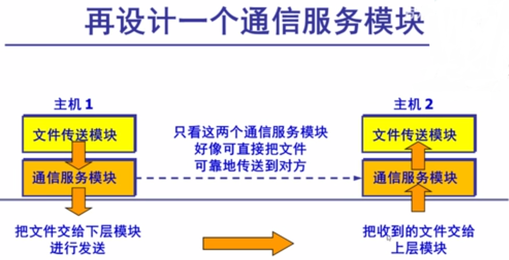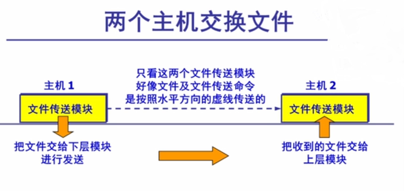 - 两个主机将文件传送模块作为最高的一层,剩下的工作由下面的模块负责。