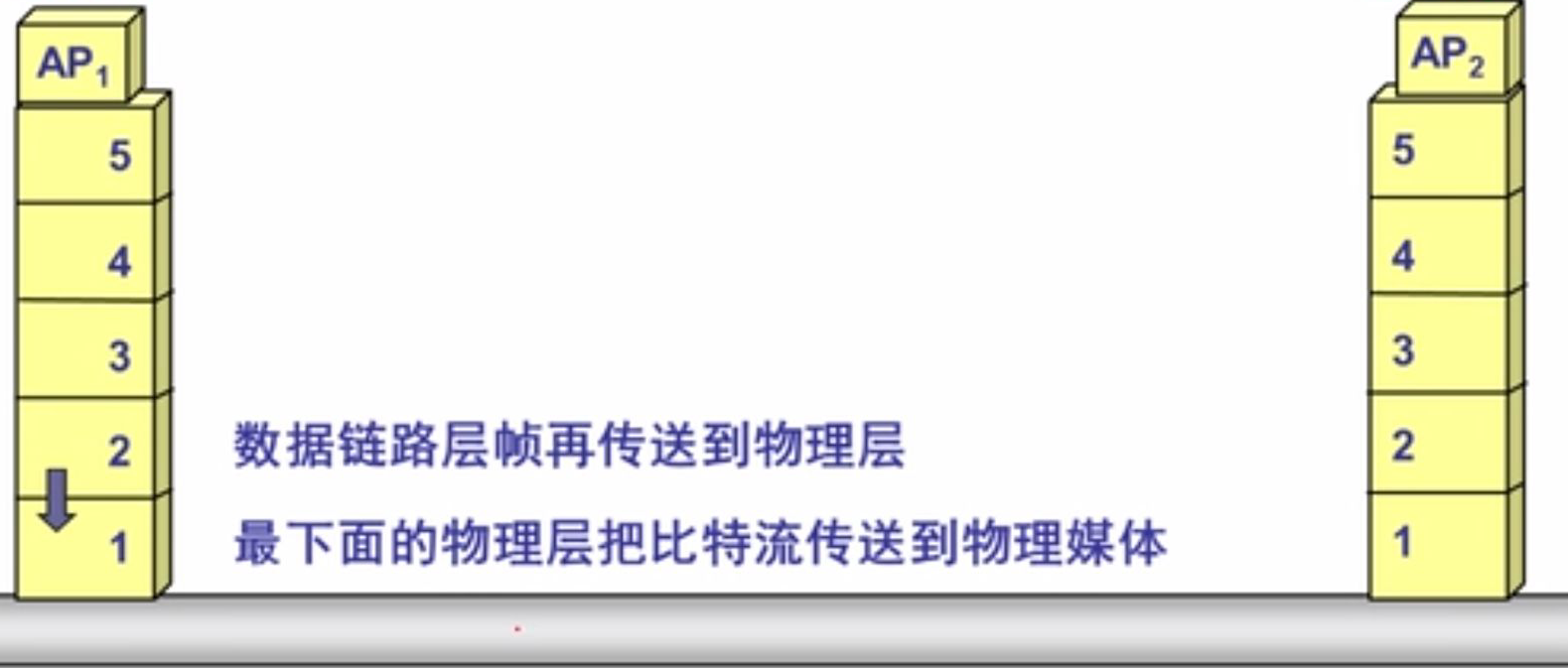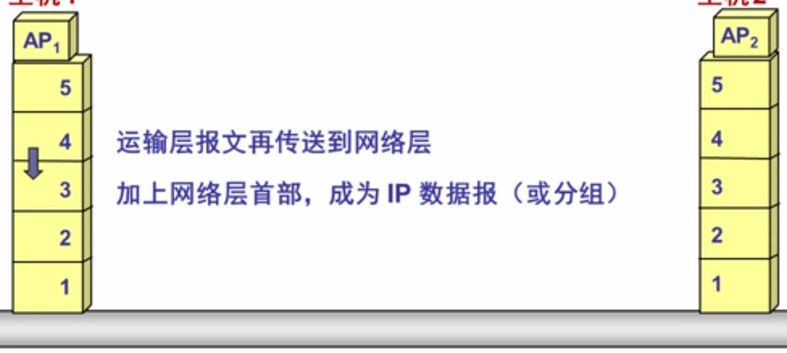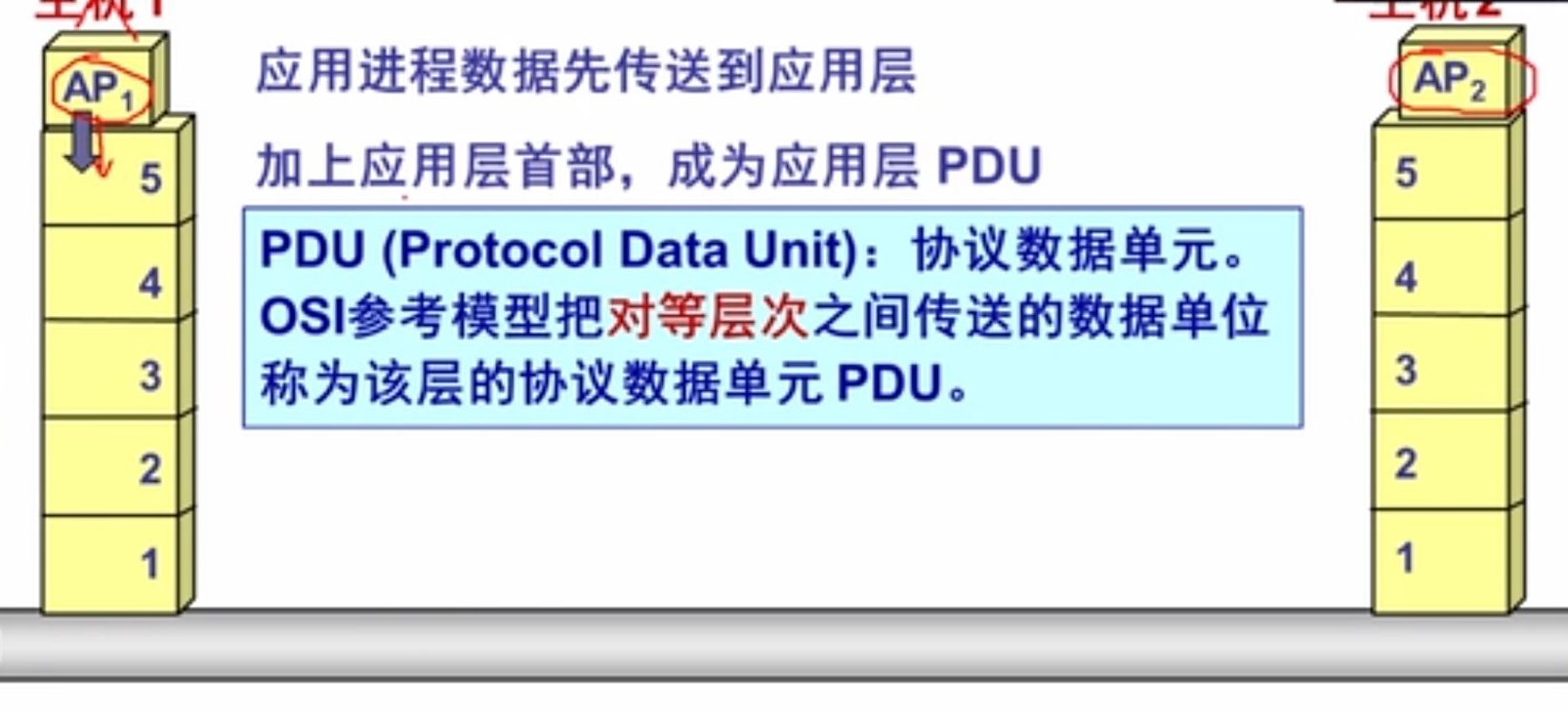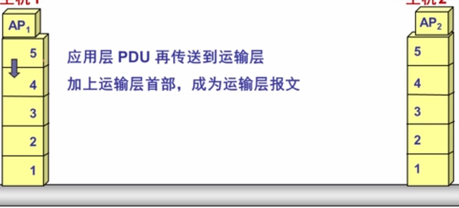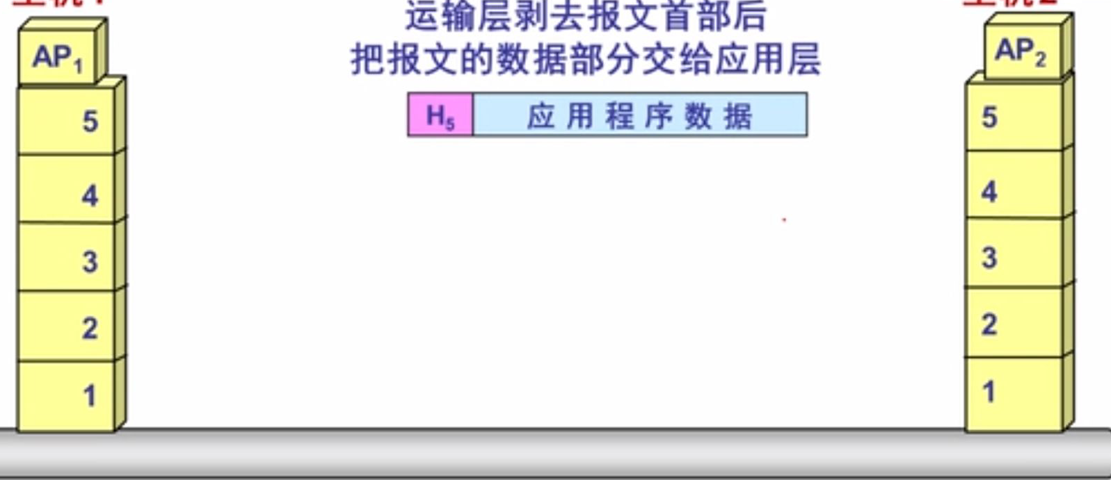 主机1向主机2发送数据的过程如下(实际是主机1中的进程AP1向主机2的进程AP2发送数据):