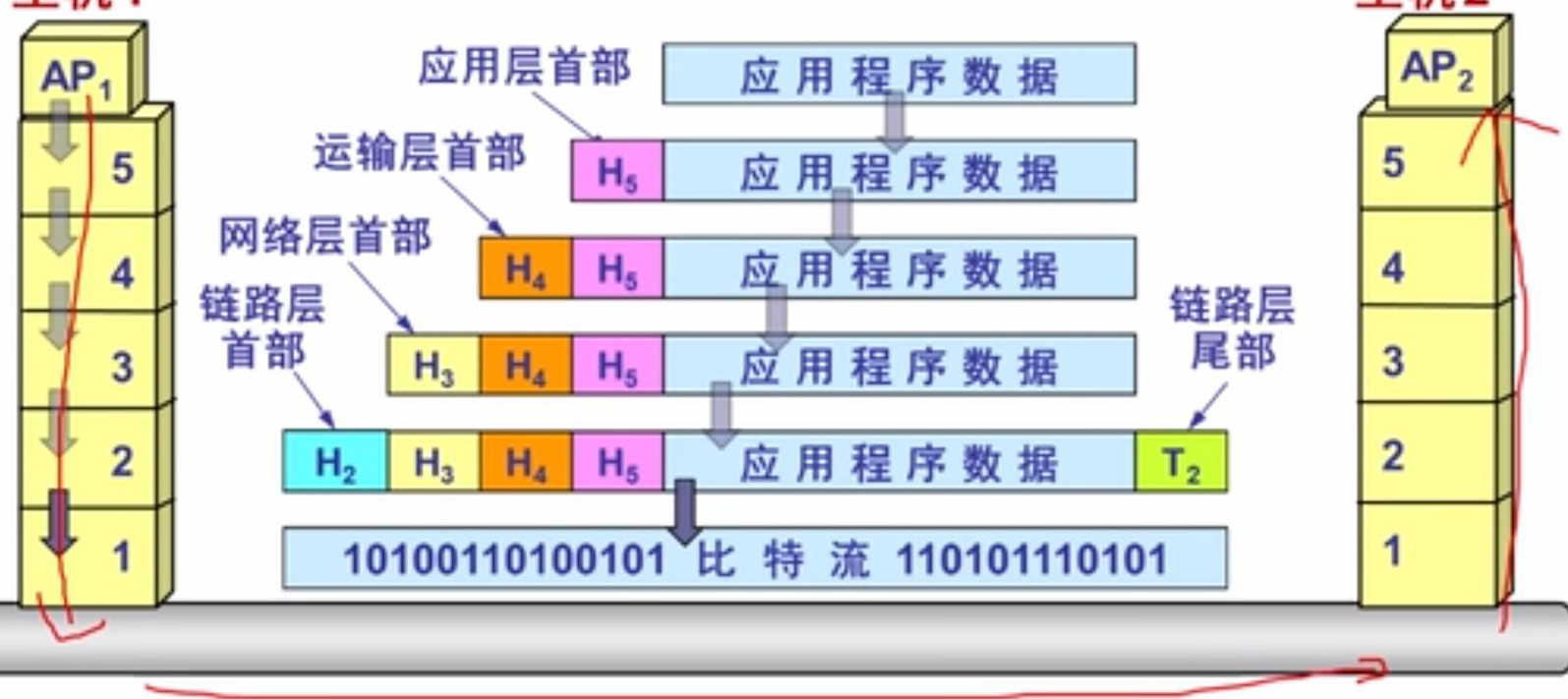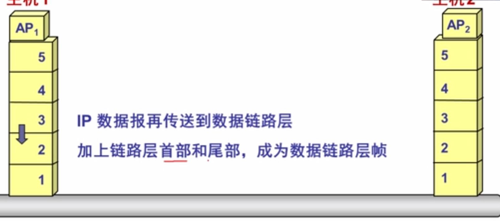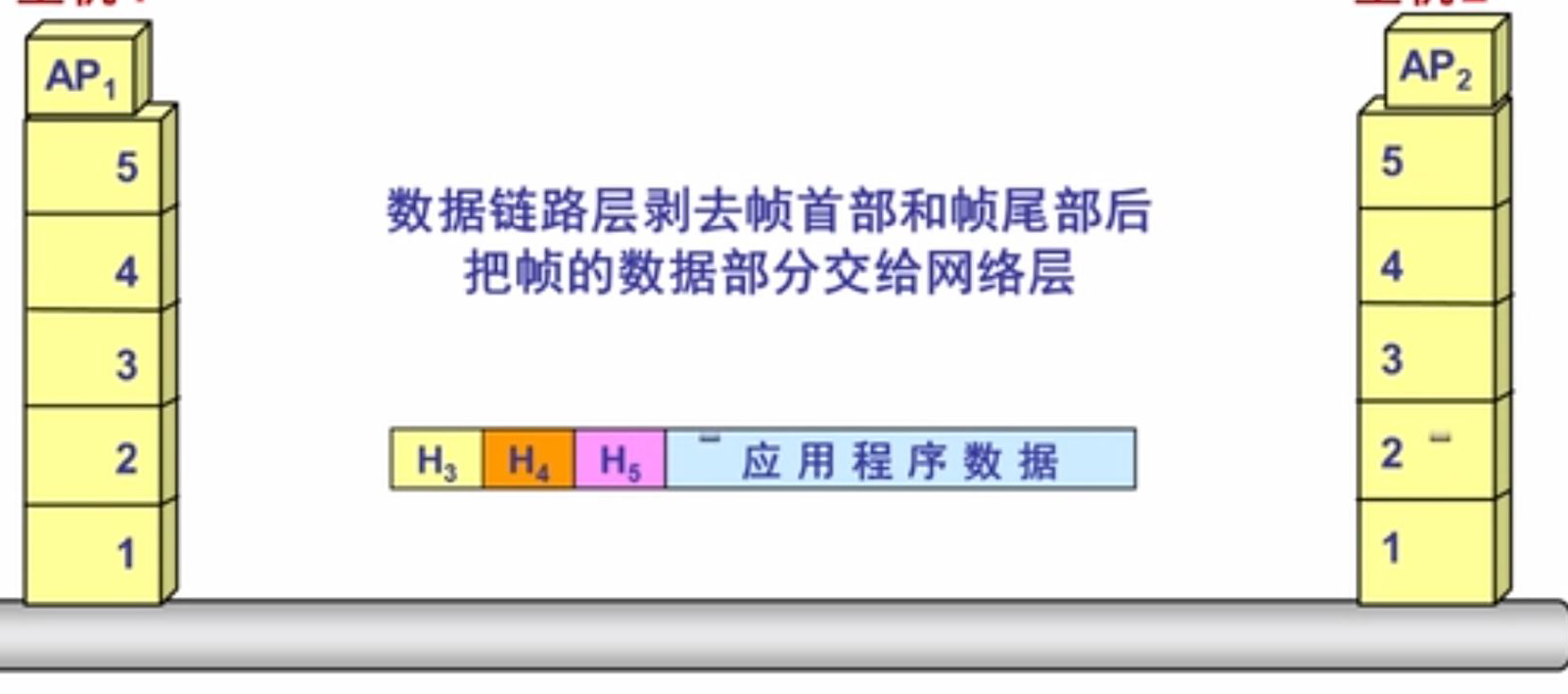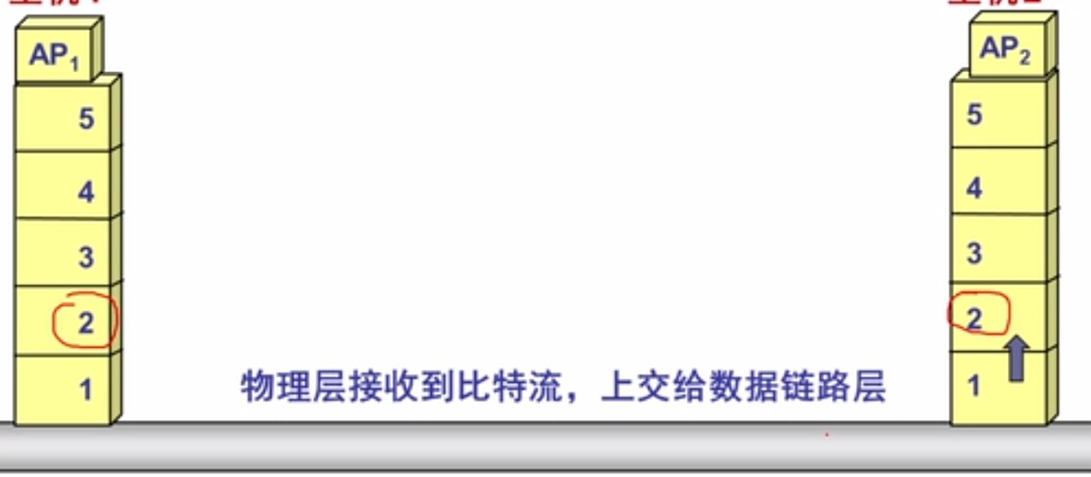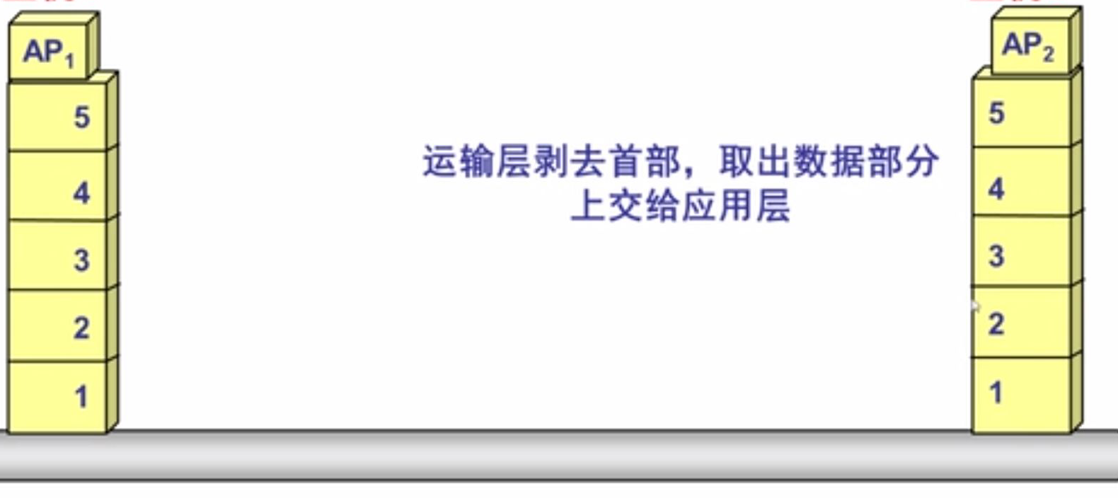主机1向主机2发送数据的过程如下(实际是主机1中的进程AP1向主机2的进程AP2发送数据):