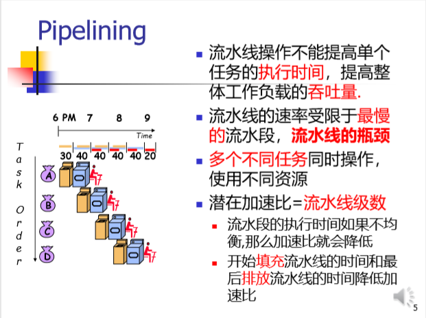 流水线操作不能提高单个任务的执行时间,提高整体工作负载的吞吐量;