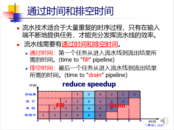 流水线有通过时间和排空时间。