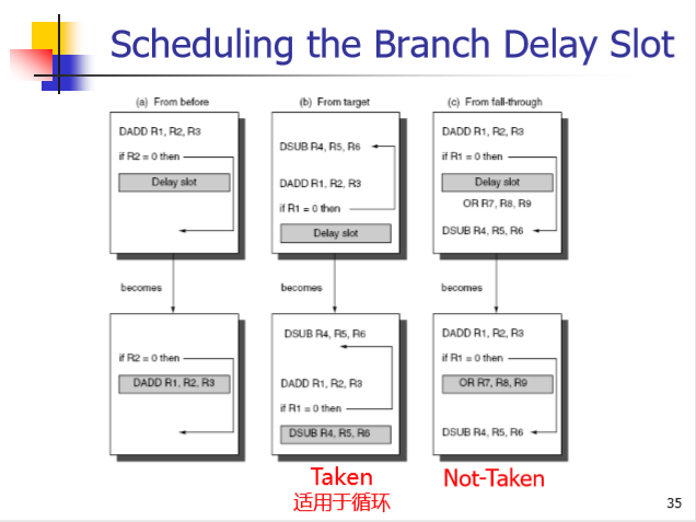 后两种方法在使用时要保证猜测错误时延迟槽中的指令不会影响程序的正常运行。