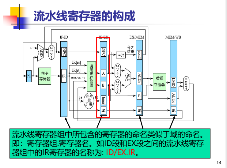 ID段:指令译码,同时根据指令格式和类型,取得通用寄存器中的数据或者立即数,送至流水线锁存器A、B;