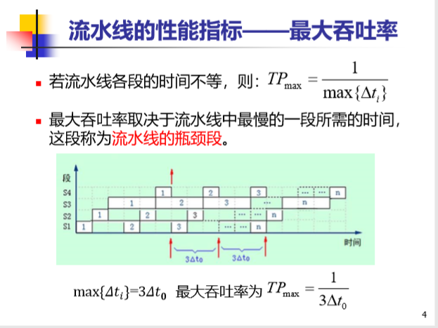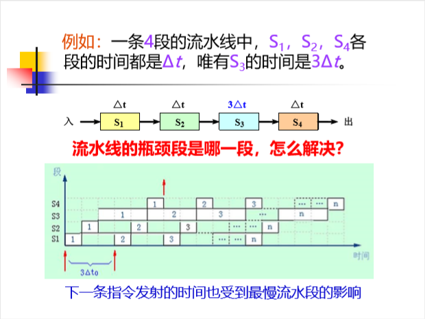 流水线的速率受限于最慢的流水段,该段称为流水线的瓶颈;
