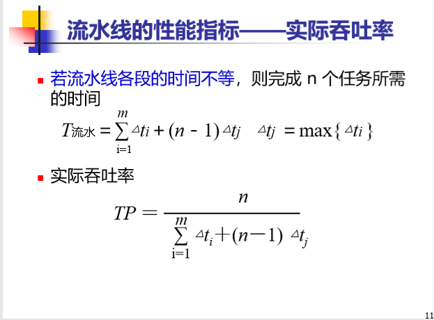 流水线的通过时间: 从任务开始到稳定工作状态(段被填满)所需要的时间