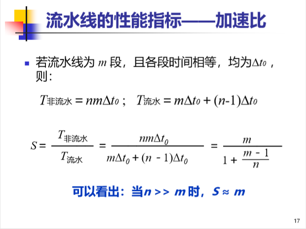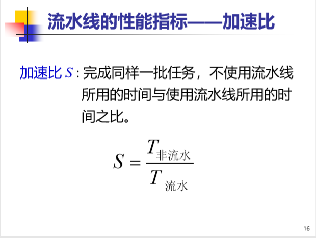 流水线的潜在加速比等于流水线的级数;