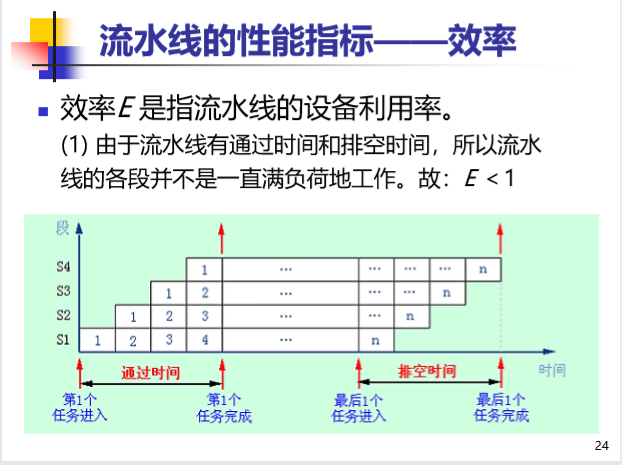 流水线的排空时间:从稳定工作状态结束到最终任务 结果所需要的时间