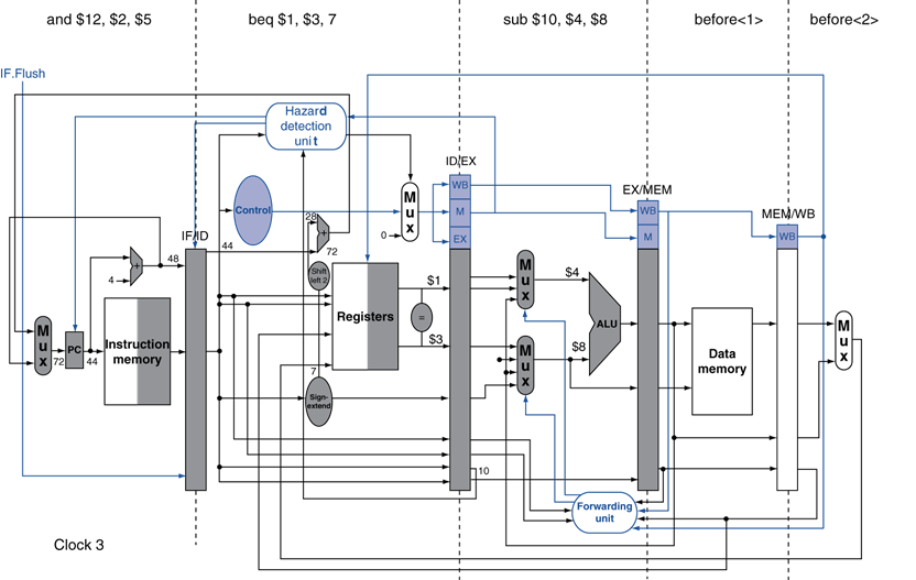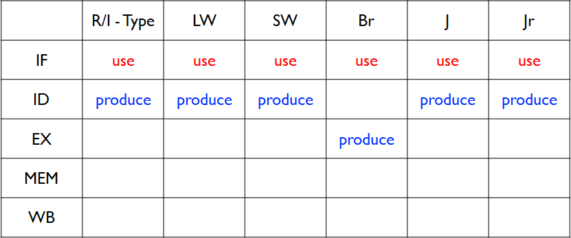 如上,所有指令都要在IF阶段使用PC;对于转移指令,至少要到EXE阶段才能得到正确的PC。需要暂停流水线一个或者两个周期。