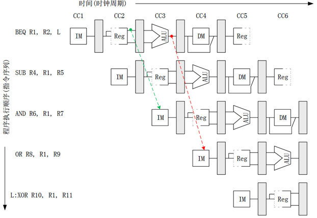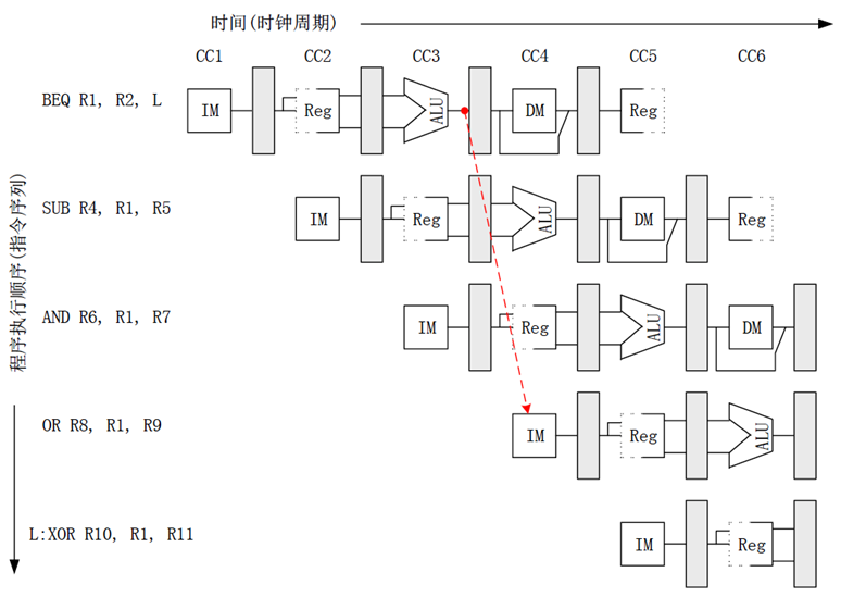 而相比之下,控制冲突是由于PC的缺失引发的,PC值是由条件转移和无条件转移指令控制的。
