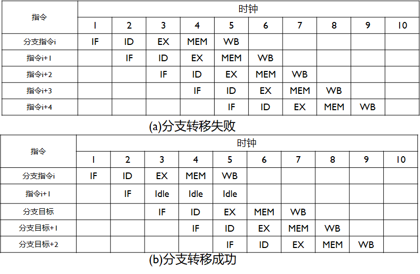 控制冲突会使流水线的连续流动受到破坏。当执行条件转移指令时,有两种可能结果:
