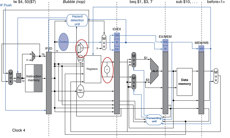 可能对于上表的情况,将 EX 提前到 ID 时进行,可以减少一个时钟周期的暂停。