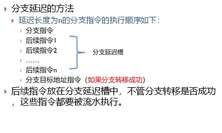 无论分支转移成功与否,延迟槽内的指令都要执行。如果分支转移失败,只需要按取来的指令执行;否则,按照分支目标地址的指令执行。