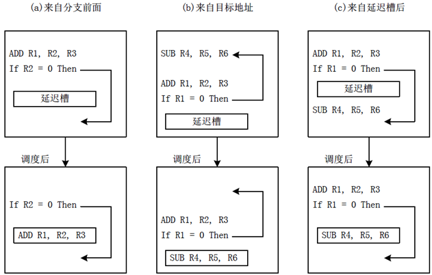 选择放到分支延迟槽中的指令必须按照一定的原则经过编译器的调度。对分支延迟的三种调度方法: