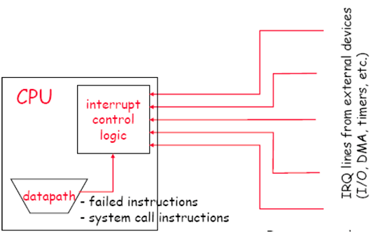 - CPU运行时会遇到突发的不正常事件,如: