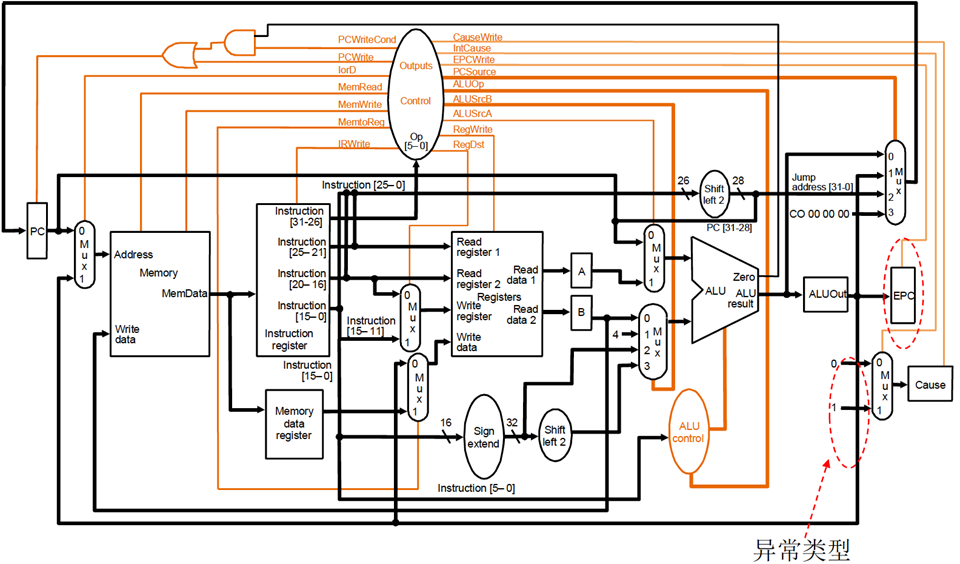 - 单周期CPU的异常处理