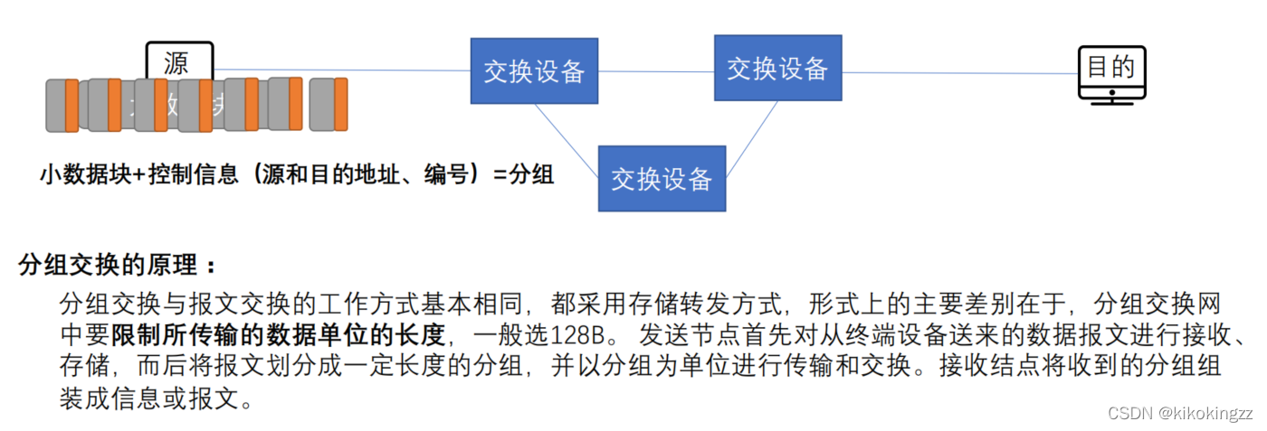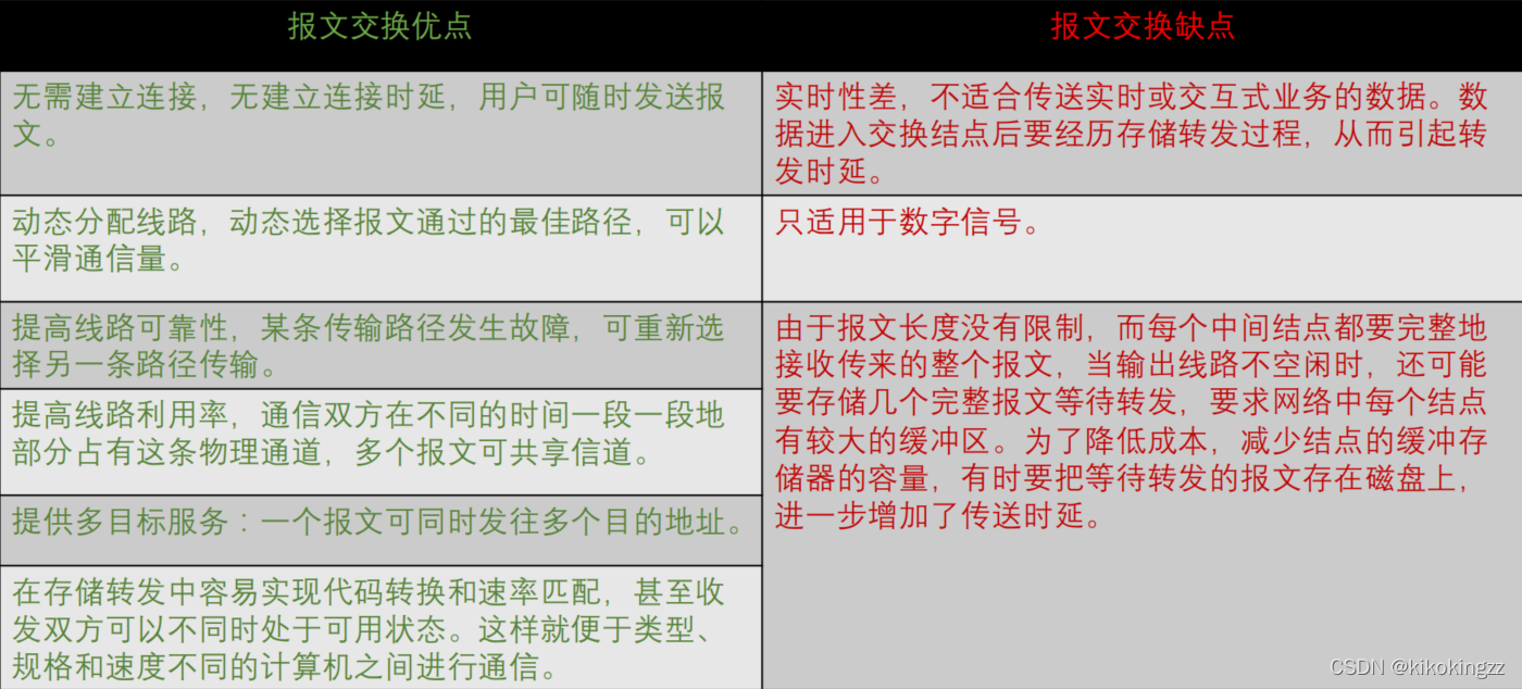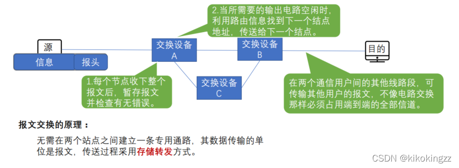 kiko????:特别关注报文是长短不一的,有的报文可以很长,有的报文可以很短,要和之后的分组交换中的“分组”做一个区分。