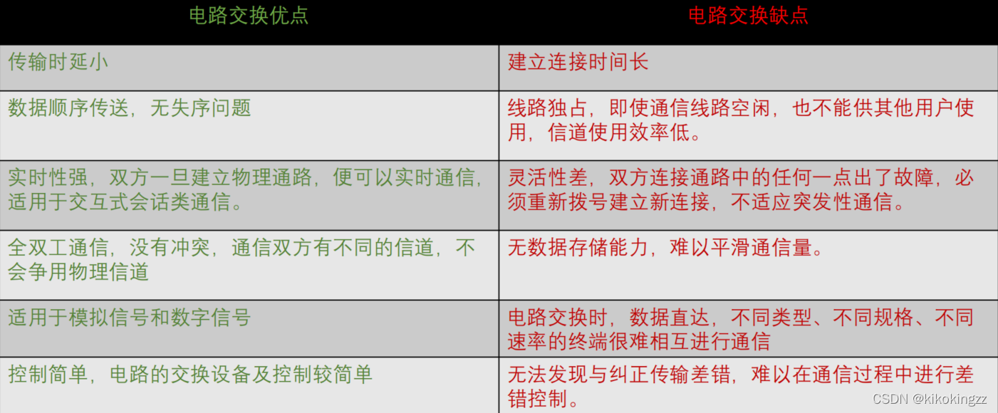 - 控制简单:电路交换的交换设备(交换机等)及控制均较简单。