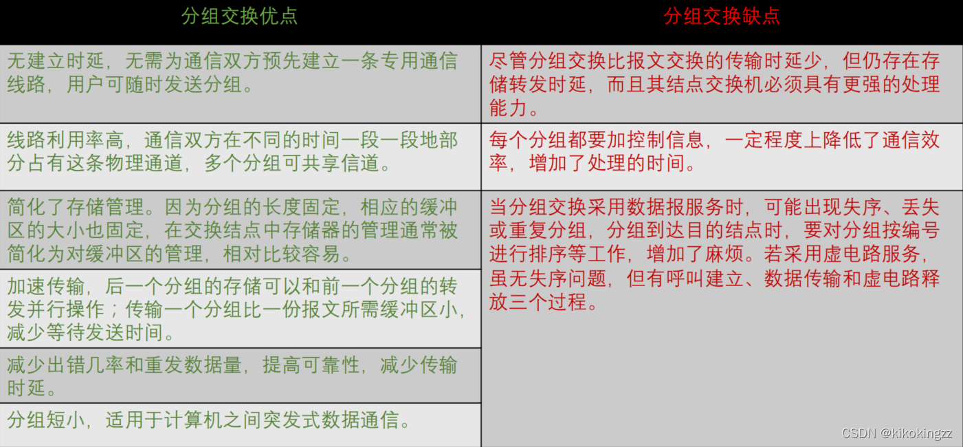 - 难以规格化:电路交换时,数据直达,不同类型、不同规格、不同速率的终端很难相互进行通信,也难以在通信过程中进行差错控制。