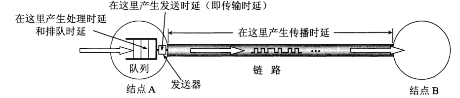 (a)发送时延(传输时延)。指主机或路由器发送数据帧所需要的时间,从发送帧的第一个比特开始到发送完最后一个比特所需要的时间。