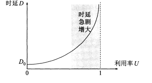 (7)利用率。有信道利用率和网络利用率两种。信道利用率指出某信道有百分之几的时间是被利用的(有数据通过)。网络利用率则是全网络的信道利用率的加权平均值。如果令D表示当前网络的时延,D0表示网络空闲时的时延,在适当的假定条件下,可用下式表示D,D0和网络利用率U(0-1)之间的关系为:D=D0/(1-U)。当网络的利用率到达其容量的1/2时,时延就要加倍。值得注意的是:当网络利用率接近最大值1时,网络的时延就会趋近无穷大。因此信道或网络的利用率过高会产生非常大的时延。故在一些拥有较大主干网的ISP通常控制信道利用率不超过50%,如果超过了就准备扩容,增大线路的带宽。