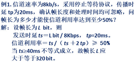 - 传输帧周期:不重传的情况下,数据发送时延+传播时延*2+处理时延+确认帧发送时延(划线部分进行忽略)
