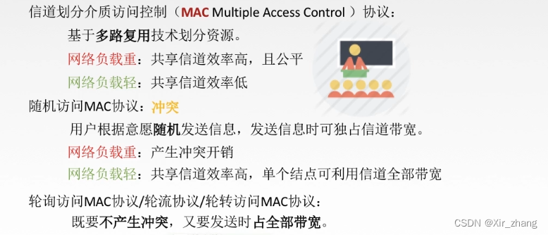 随机访问介质访问控制:所有用户可随机发送信息,发送信息时占全部带宽。
