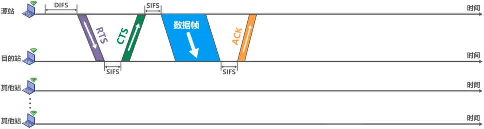 为了尽可能减少碰撞的概率和降低碰撞的影响,802.11标准允许要发送数据的站点对信道进行预约。