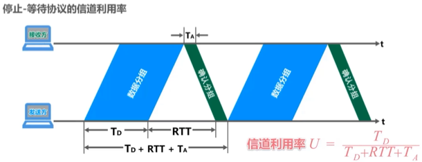 当往返时延RTT远大于数据帧发送时延TD时(例如使用卫星链路),信道利用率非常低。若出现重传,则对于传送有用的数据信息来说,信道利用率还要降低。为了克服停止-等待协议信道利用率很低的缺点,就产生了另外两种协议,即后退N帧协议GBN和选择重传协议SR。