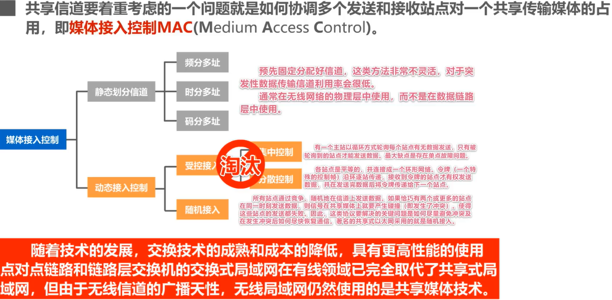 动态划分信道:受控接入、随机接入。
