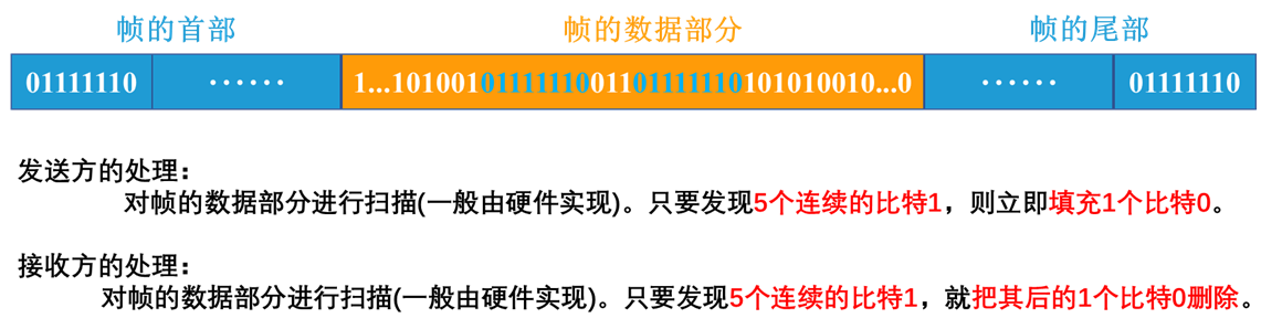 透明传输 - 面向比特的同步链路采用插入比特0的比特填充法如下图:
