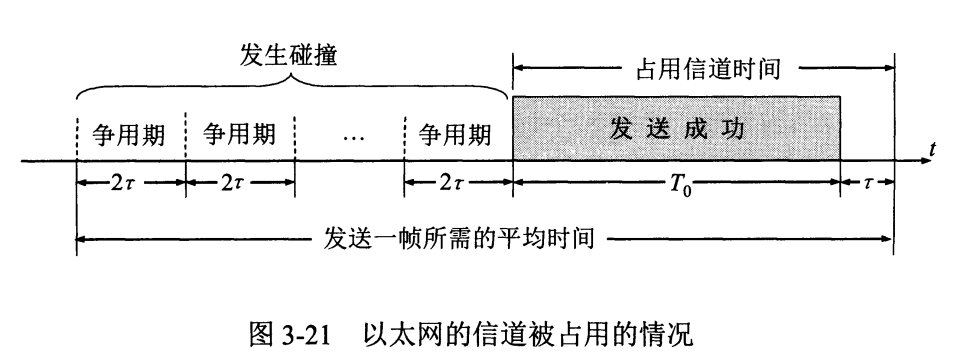 上图为一帧发送平均时间的简单图示。据统计,当以太网的利用率达到30%时就己经处于重载的情况。很多的网络容量被网上的碰撞消耗掉了。信道利用率的计算若有兴趣请自行查阅。