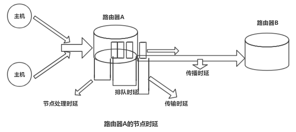 分组由源出发,通过一系列路由器传输,在目的地结束,在这一过程中,经受着各种各样的时延。端到端时延(即源向目的地传输分组的总时延)由众多节点时延组成。