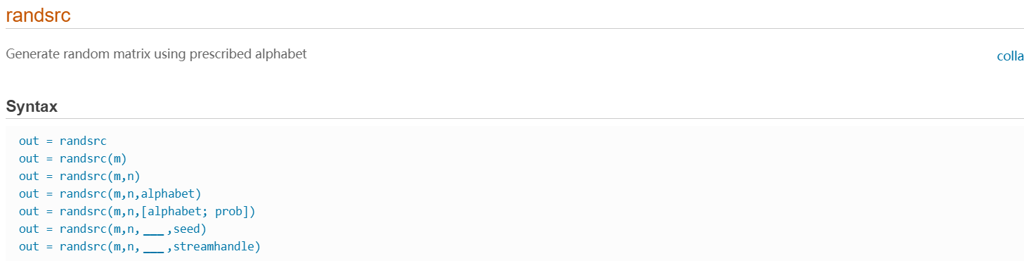 out = randsrc(m,n,___,seed) 接受来自先前语法的输入组合和一个种子值,用于初始化统一随机数发生器rand。