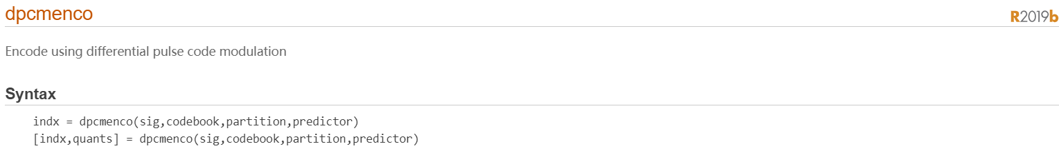 [indx,quants] = dpcmenco(sig,codebook,partition,predictor) 与上面的语法相同,只是quants包含基于量化参数的sig的量化,quants是一个与sig大小相同的向量。