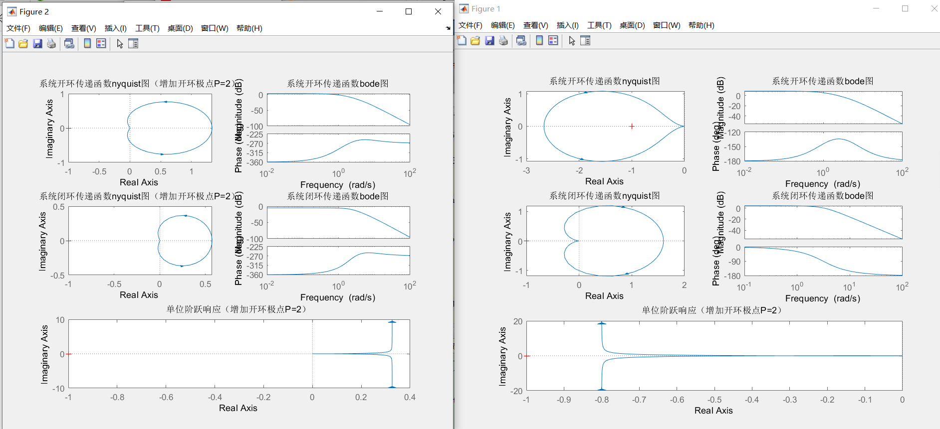 title("系统闭环传递函数nyquist图(增加开环极点P=2)")