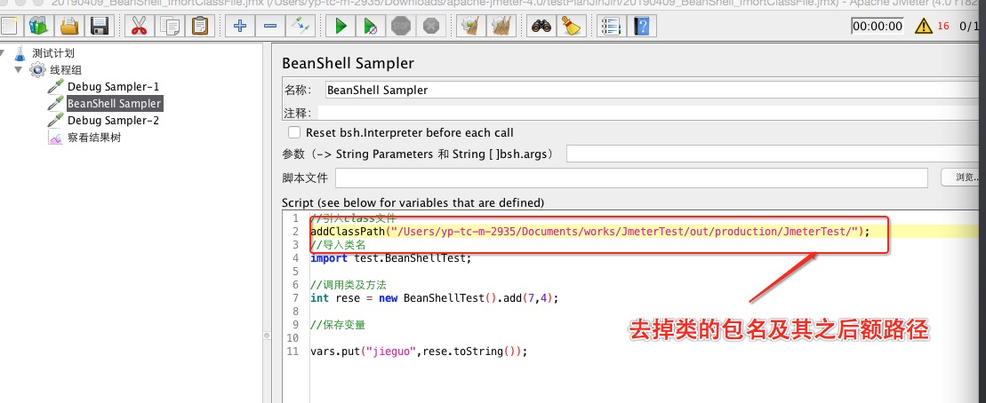 使用Jmeter BeanShellSampler导入java class文件后,运行,报如下错误