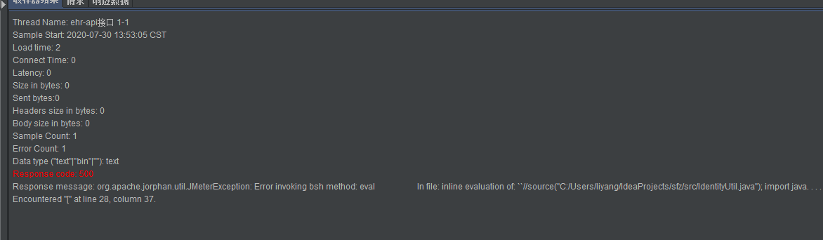 我是靠谱客的博主 无语白开水,这篇文章主要介绍JMeter5.0 org.apache.jorphan.util.JMeterException: Error invoking bsh method: eval In file...错误,现在分享给大家,希望可以做个参考。