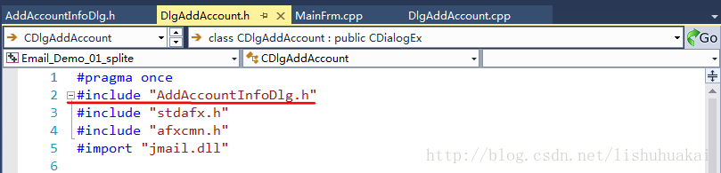 正如上图所见,一段在我们眼里看起来没有任何错误的代码,居然爆出了4430的错误,先不急,我们先看一看DlgAddAccount.h文件中包含的头文件: